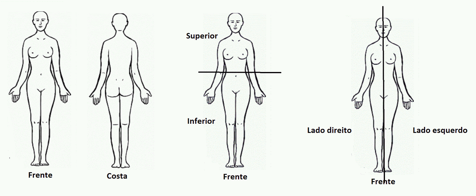Temos lado direito e lado esquerdo, parte superior do corpo e parte inferior